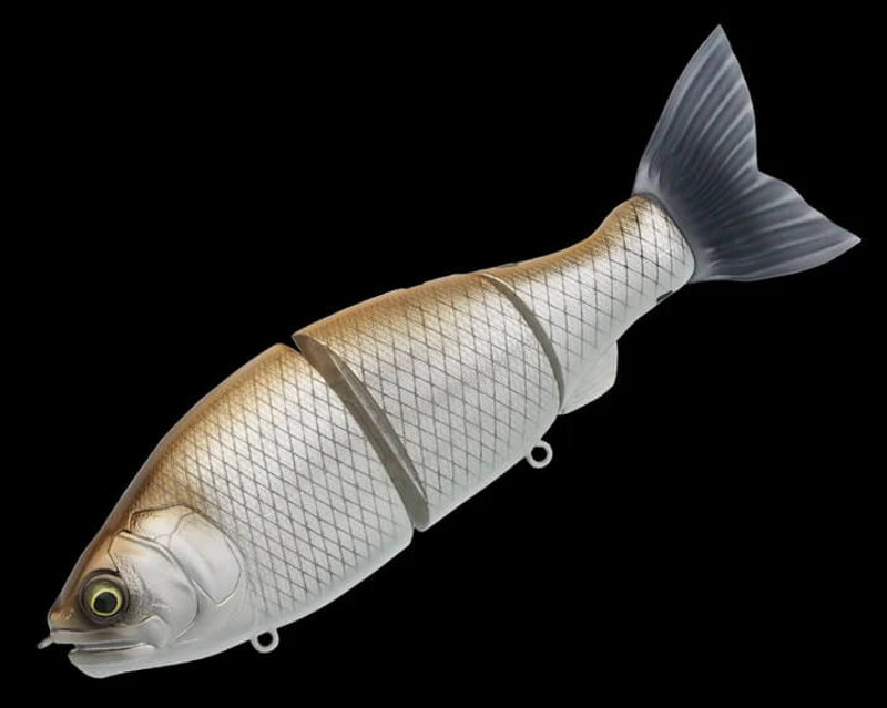 Gan Craft Ratchet 184 is a multi joint, S Swimming swimbait, featuring the newly design 'ROM Tail' from Gan Craft and ROM damper rear joint, as seen in the Jointed Claw Shift 183. A bait of many actions. This lure and can be fished as a slow seed S Swim, a high speed tight retrieve, even a twitch and pause retrieve. Ratchet 184 can be weighted to influence buoyancy and turn the lure from a floating bait into suspend or slow sink bait. Ideal for Murray Cod, Barramundi, Flathead and even big bass.