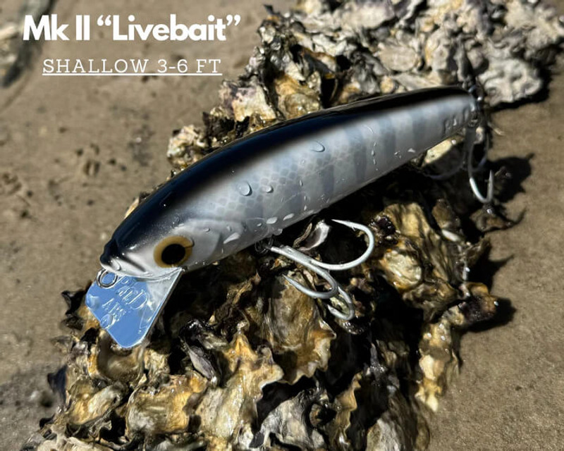 Newest lure in the PhD stable. A tough lure made from molded ABS. Rigged with BKK hooks and BKK split rings. the Aluminium bib is designed to take the toughest of treatments. Weighing around 85grms it casts like a bullet. These lures are designed to mimic mullet on the surface. Will dive to around 4-6ft with a faster retrieve. Ideally it should be reeled with a slow retrieve.